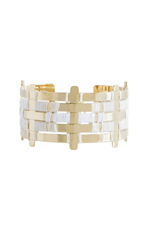 Manchette en laiton doré brodée de fil blanc de Camille Enrico