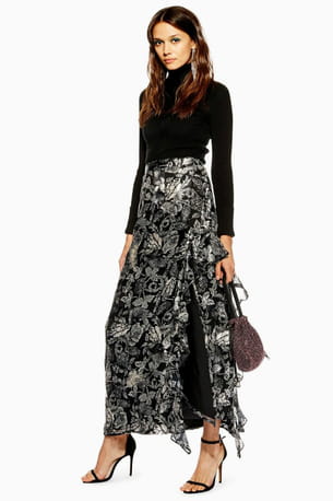 Jupe longue noire et blanche ornée de plumes de Topshop