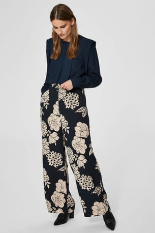 Pantalon taille haute flare imprimé fleurs marine de Selected