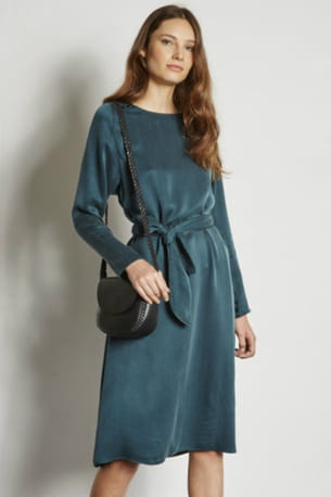 Robe satinée bleue ceinture de Ekoyg