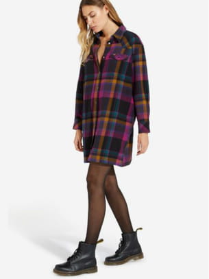 Robe-chemise courte et oversize en flanelle carreaux écossais multicolores à fermeture boutons-pressions noirs et poches à rabat sur la poitrine avec poignets resserrés de Wrangler
