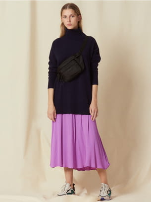 Robe mi-longue et fluide avec pull col roulé en laine mélangée couleur marine et bas en voile couleur lilas de Sandro