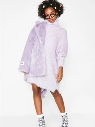 Robe-pull courte et oversize couleur lavande à col roulé et finitions effilochées avec emmanchures tombantes et larges bords-côtes aux poignets de Dolls Kill