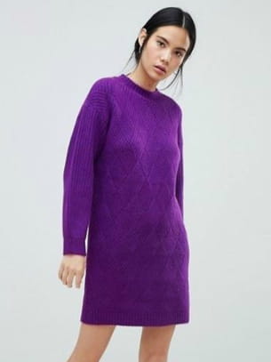 Robe-pull courte et droite en maille violette à jeux de maille et col rond ras du cou avec petits bords-côtes d'Asos