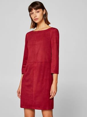 Robe courte et droite en suédine couleur bordeaux à col bateau et manches trois-quarts avec détails surpiqués ton sur ton d'Esprit