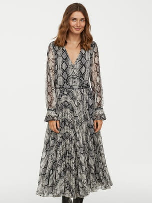 Robe mi-longue et fluide en mousseline à imprimé façon peau de python et col V croisé avec taille cintrée grâce à un nœud et bas plissé d'H&M