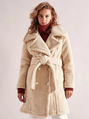 Manteau ceinturé en imitation mouton de House Of Sunny chez Urban Outfitters