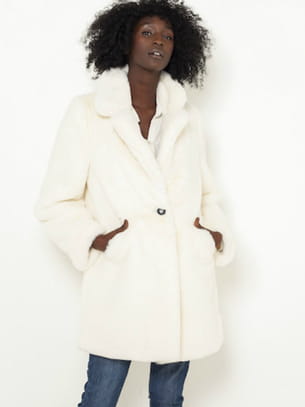 Manteau 3/4 en fausse fourrure blanche de Camaïeu
