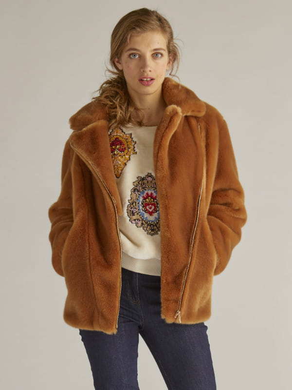Veste motard en fausse fourrure écureuil de Derhy