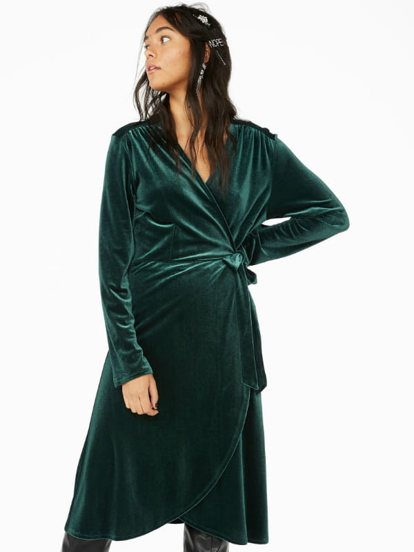 Robe midi coupe cache-cœur couleur vert sapin avec détails drapés de Monki