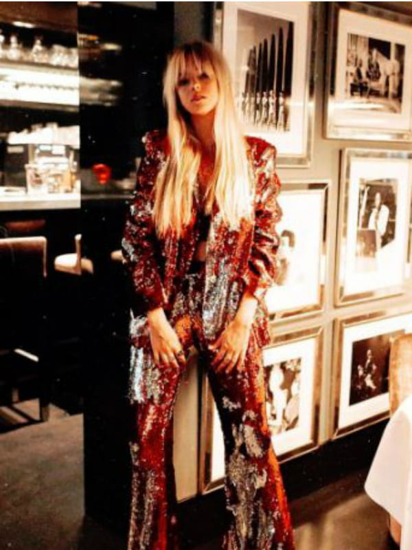 Blazer long et oversize à sequins rouges sur une face et argentés sur l'autre avec double boutonnage croisé noir de SÉ-ACH