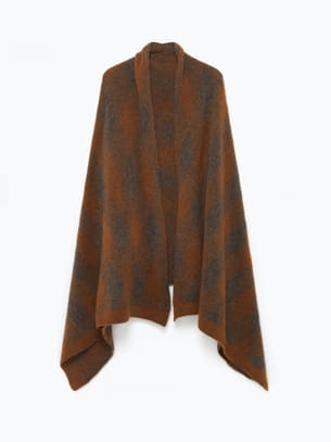 Écharpe-plaid en laine mélangée couleur chocolat à imprimés losanges ton sur ton et gris anthracite d'American Vintage