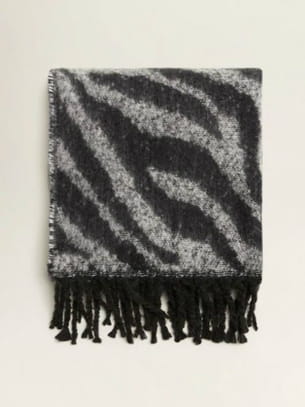 Écharpe en maille à motif zébré gris et noir avec extrémités frangées de Mango