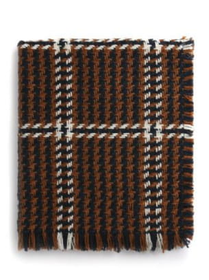 Écharpe en maille couleur chocolat à imprimé pied-de-poule noir et blanc avec finitions effilochées aux extrémités de Primark