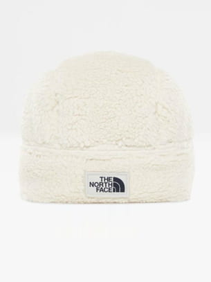 Bonnet en polaire couleur crème avec écusson brodé et griffé sur le devant de The North Face