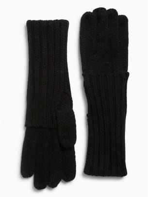 Longue paire de gants en maille noire côtelée avec fil scintillant argenté de La Halle