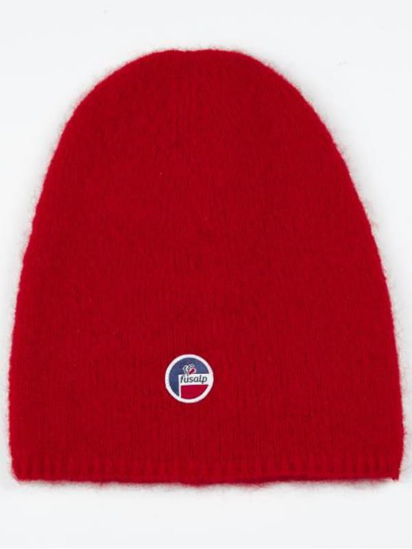 Bonnet en mohair rouge avec petits bords-côtes côtelés et logo brodé sur le devant de Fulsap