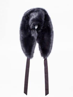 Col-écharpe en fausse fourrure grise foncée avec liens satinés à nouer de Zadig & Voltaire