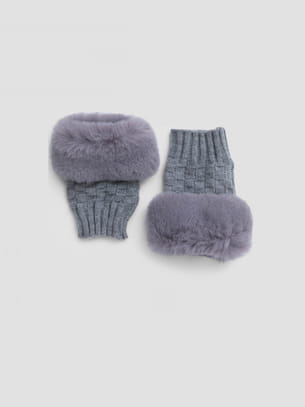 Paire de mitaines en fausse fourrure et maille texturée couleur gris souris de MOA