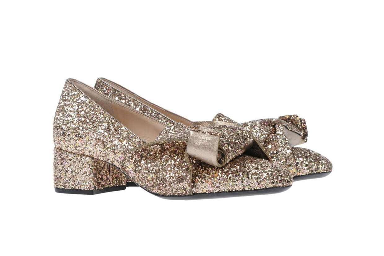 Escarpins en cuir et paillettes or de N21 sur Yoox.com