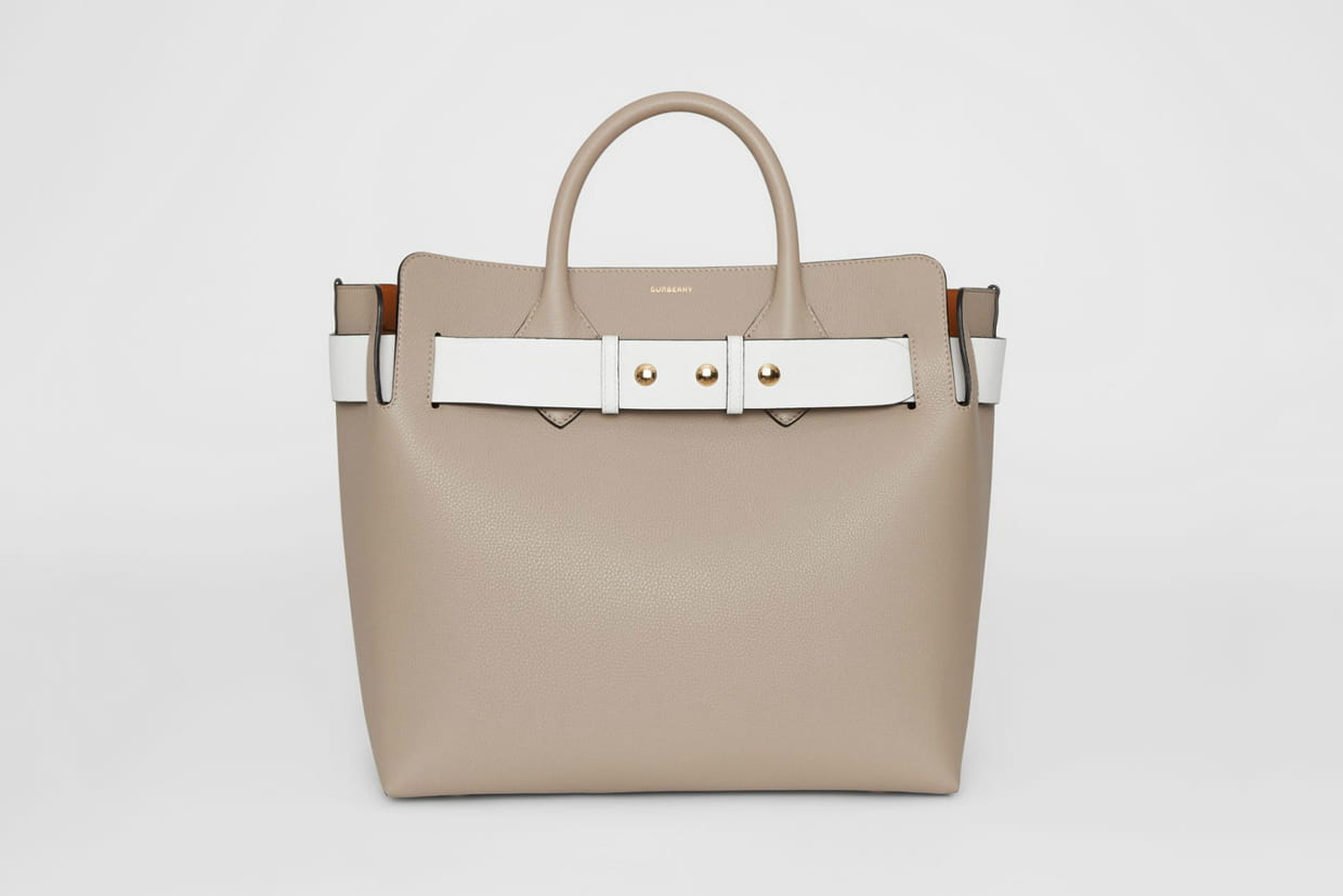 Sac en cuir tricolore à triple pression beige et blanc de Burberry