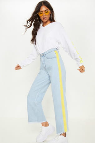 Jean court clair avec bandes jaunes de PrettyLittleThing ©  PrettyLittleThing