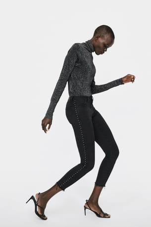 Jean skinny à bande latérale et verroteries de Zara ©  Zara
