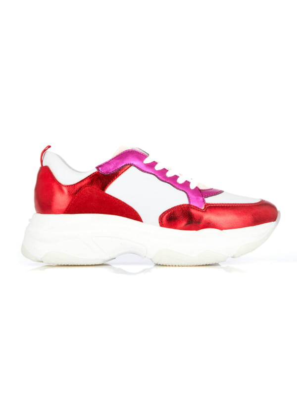Sneaker rouge blanche et rose métal de Mellow Yellow