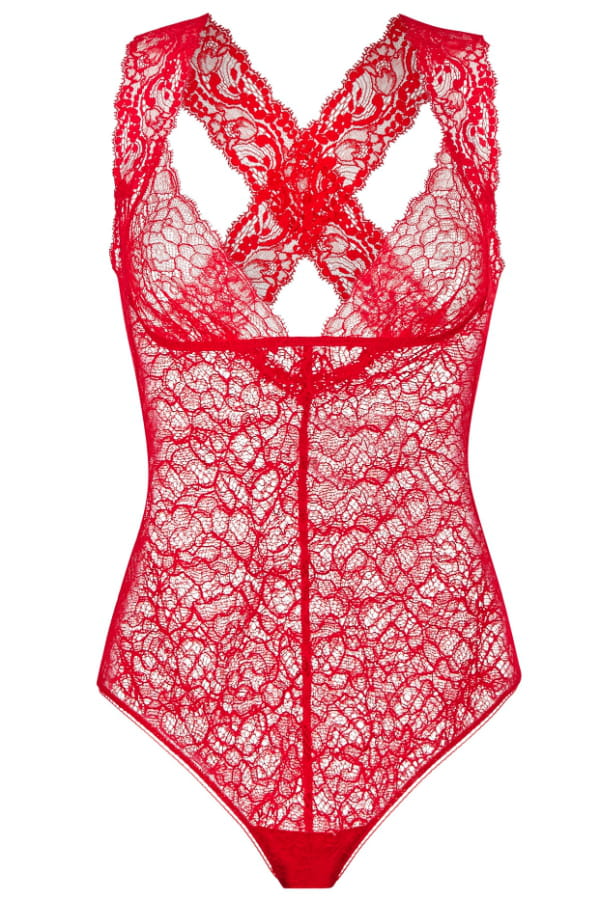 Body en dentelle rouge dos bretelles croisées de La Perla