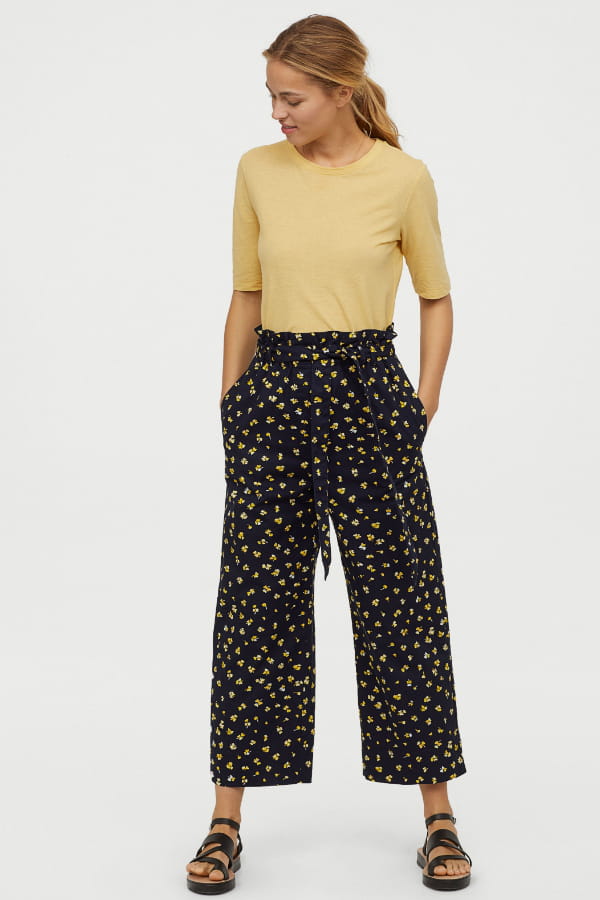 Pantalon de forme paper bag avec motifs imprimés coupé à 7/8ème de H&M
