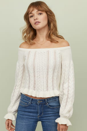Pull épaules nues avec détails ajourés sur le buste et les manches de H&M