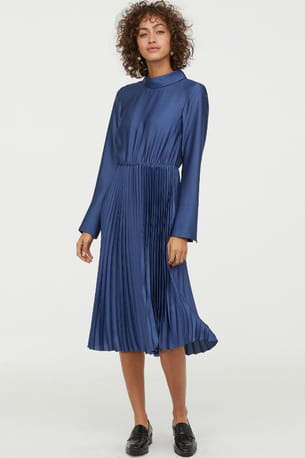 Robe plissée effet satiné couleur bleu nuit de H&M
