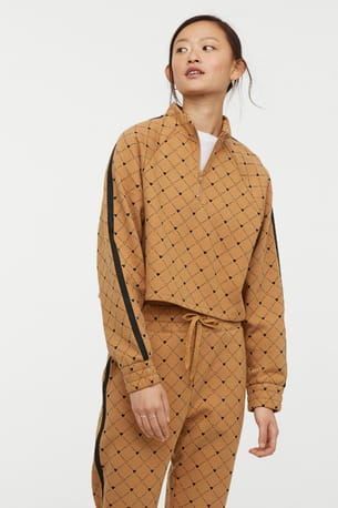 Sweat à col droit avec zip imprimé petits coeurs couleur caramel de H&M