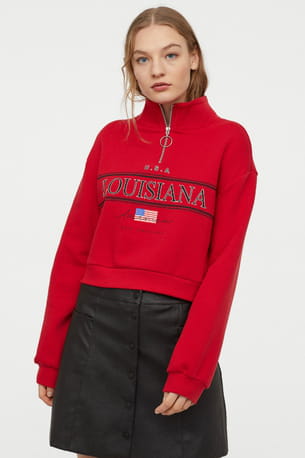 Sweat à col droit avec zip rouge avec message "Louisiana" sur le devant de H&M