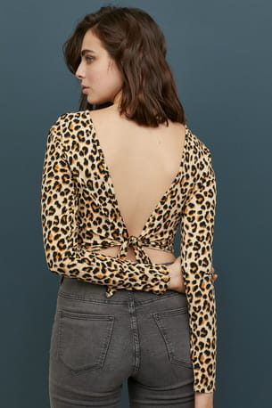 Top à dos ouvert imprimé léopard avec noeud dans le dos de H&M
