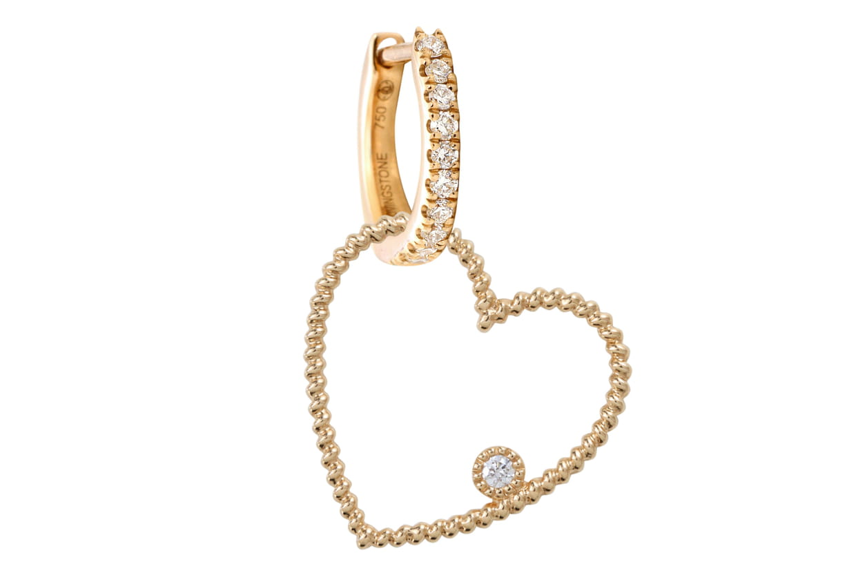 Créole en or jaune pavée diamants et charm cœur en or jaune un diamant de Lovingtone au Bon Marché