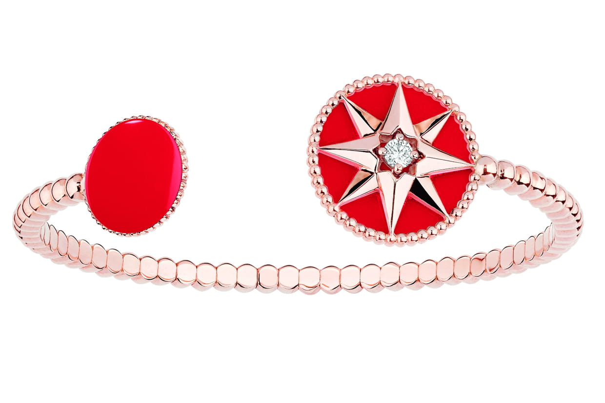 Jonc en or rose, diamant et laque céramique rouge de Dior Joaillerie