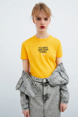 T-shirt imprimé sur le devant jaune et noir de Zara