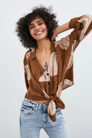 Chemise imprimée abstrait à nouer sur le devant de Zara