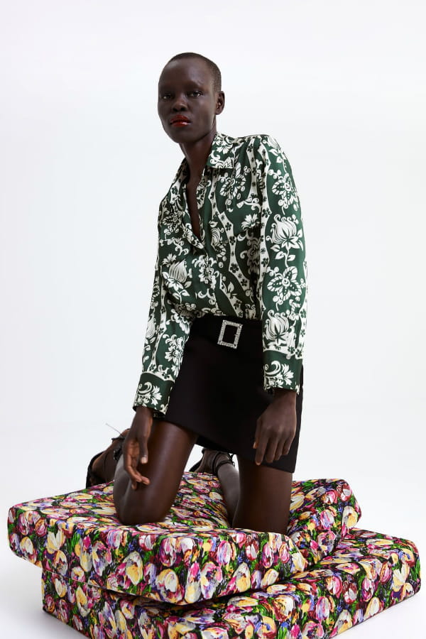 Chemise imprimé fleuri et boutons bijoux de Zara