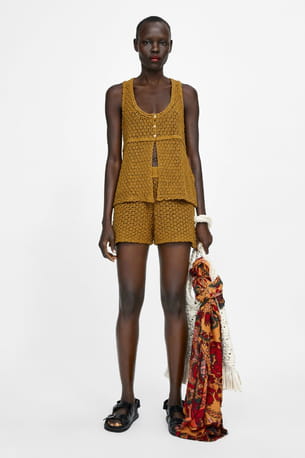 Top jaune en maille crochet de Zara