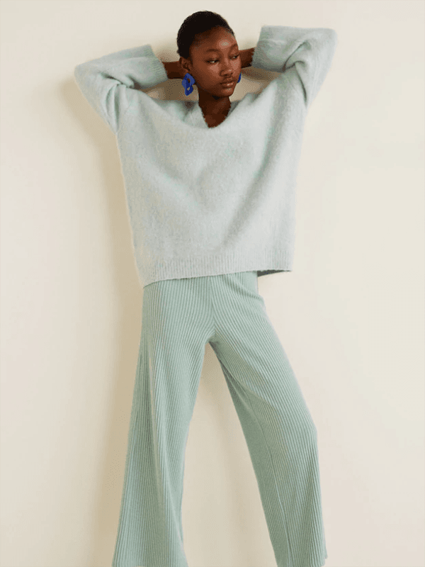 Pantalon évasé bleu pastel en velours côtelé de Mango