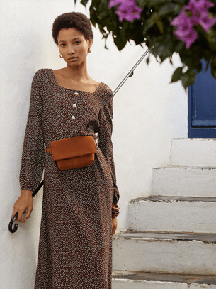 Robe mi-longue à pois blanc à col rond boutonné de Mango