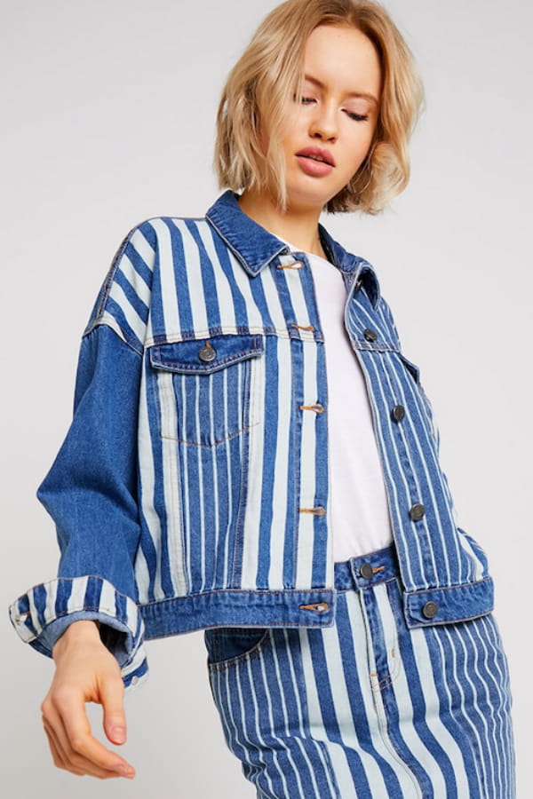 Veste en jean rayée sur le buste et les revers de manches de Noisy May sur Zalando