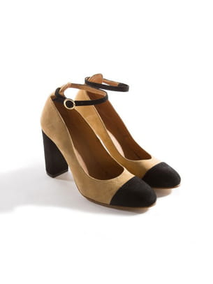 Escarpins en chèvre velours beige et noir "Lorine" de Balzac Paris