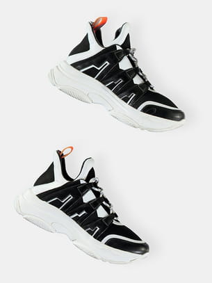 Baskets noires et blanches à grosses semelles de Essentiel Antwerp © Essentiel Antwerp