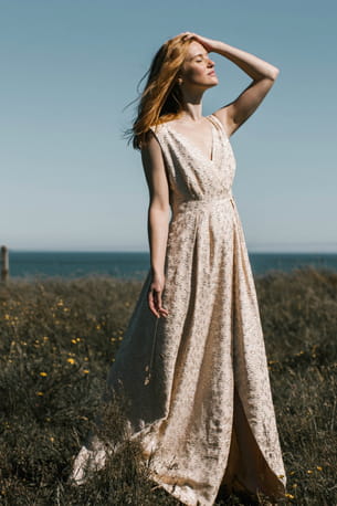 Robe "Telma" avec impressions dorées et décolleté de Lorafolk