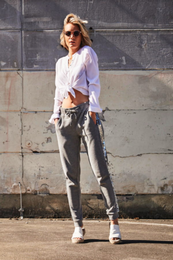 Pantalon "Ria" type jogging avec bandes brillantes de Timezone