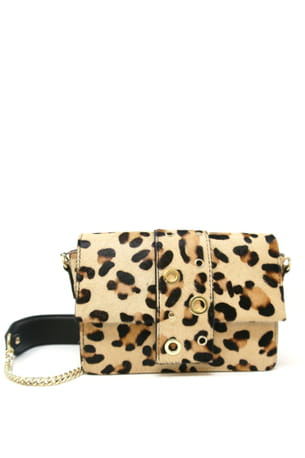 Sac "Kani" teinte Poni imprimé léopard avec bandoulière chaîne de Cosmoparis