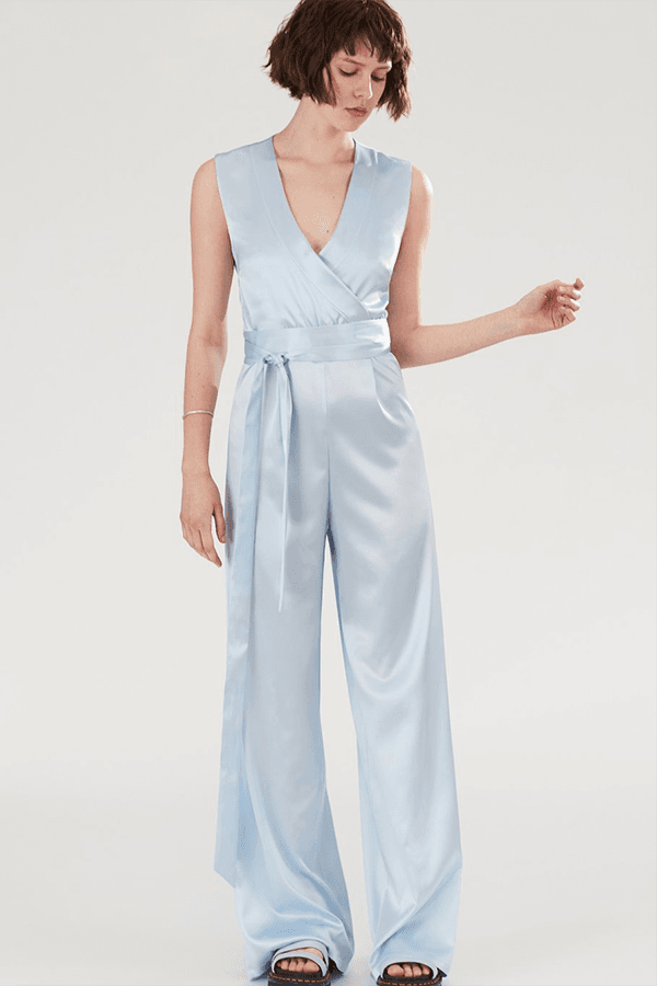 Combi-pantalon en soie bleu ciel de Côme Editions
